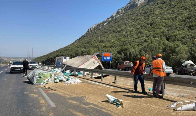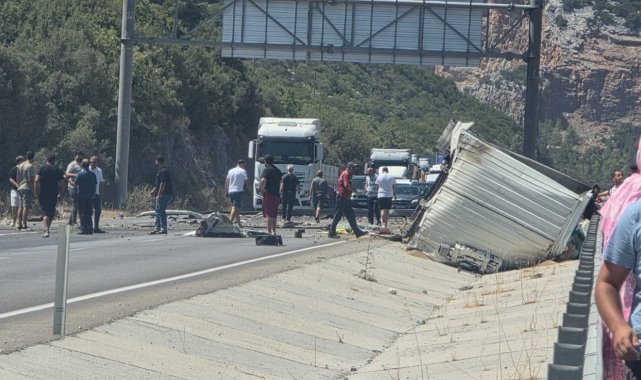Antalya'da direksiyon hakimiyetini kaybetmesi sonucu meydana gelen kazada, yol kenarına devrilen tırın genç sürücüsü hayatını kaybetti.Kaza, saat 12.30 sıralarında Döşemealtı ilçesi Bıyıklı Mahallesi sınırları içerisinde bulunan D650 kara yolu üzerinde meydana geldi. Edinilen bilgiye göre, Bucak'tan Antalya istikametine seyir halindeki Buğrahan Türker'in (25) kullandığı çim tohumu yüklü 06 DIP 437 plakalı tır, henüz belirlenemeyen bir nedenle, sürücüsünün direksiyon hakimiyetini kaybetmesi sonucu bariyerlere çarptı. Çarpmanın şiddetiyle dorsesi ayrılan tır, yan yatarak sürüklenmeye başladı. Bir süre sürüklenen tır hurdaya döndü. Kazayı görenlerin ihbarı ile olay yerine polis, jandarma, itfaiye ve sağlık görevlileri sevk edildi.Bariyer yerinden koptuİhbarla verilen adrese gelen ekipler araç içerisinde bulunan 25 yaşındaki sürücünün hayatını kaybettiği belirledi. Kaza nedeniyle yol kenarında bulunan bariyerin yerinden koptuğu görüldü. Tıra ait parçalar çevreye savrulurken, trafik akışı uzun süre tek şeritten sağlandı. Yapılan savcılık incelemesinin ardından kazada hayatını kaybeden Buğrahan Türker'in cansız bedeni Antalya Adli Tıp Kurumu morguna kaldırıldı.