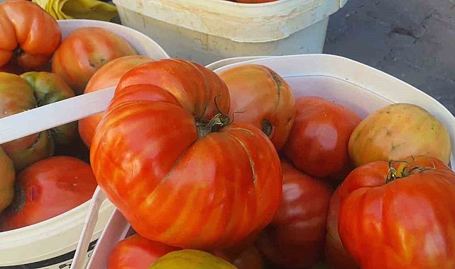 Elazığ'ın Palu ilçesinde ata tohumlarından yetiştirilen lezzeti ve büyüklüğü ile dikkat çeken Mahman domatesi, tezgahlardaki yerini aldı.Elazığ'ın Palu ilçesine bağlı Akyürek köyünde ata tohumu ile asırlardır yetiştirilen Mahman domatesi, köy pazarında satışa sunuluyor. Pazartesi ve cuma günleri ilçedeki pazara getirilen domatesler, hem lezzeti hem de büyüklüğü ile dikkat çekiyor. Kilosu 30 TL olan domatesler, kova ile satılıyor.Üretici Mahmut Meydan, "Bir domatesin ortalaması 1 kilo geliyor. Benim bugüne kadar tarttığım en ağır domates 2 kilo 580 gram. Yeri ve suyu soğuk olduğu için ata tohumundan yetişiyor. Aynı fideyi nerede ekersen ek bu büyüklüğe ulaşmaz. Meşhurdur ve burada kovayla satılır" dedi.