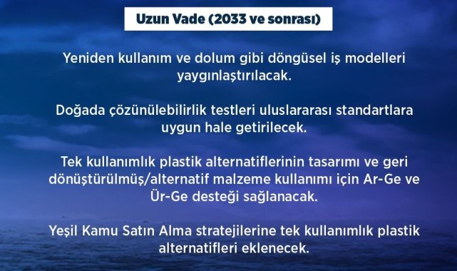 Çevre, Şehircilik ve İklim Değişikliği Bakanı Murat Kurum, "Sıfır Atık vizyonumuzla tarihi bir adımı daha atıyoruz. Tek kullanımlık plastiklerde kısıtlamaya gidiyor, denizlere ve ekosisteme sahip çıkıyoruz" dedi.Çevre, Şehircilik ve İklim Değişikliği Bakanı Murat Kurum, sosyal medya hesabında bir paylaşım yaptı. Yaptığı paylaşımda, "Sıfır Atık vizyonumuzla tarihi bir adımı daha atıyoruz. Tek kullanımlık plastiklerde kısıtlamaya gidiyor, denizlere ve ekosisteme sahip çıkıyoruz. Sektörü döngüsel ekonomiye yönlendirip 'tek' değil sürdürülebilir üretim diyoruz. Depozito Sistemi gibi uygulamalarla destekleyeceğimiz 'Tek Kullanımlık Plastikler, Deniz Çöpleri ve Mikroplastikler Yol Haritamız' hayırlı olsun" dedi.Birleşmiş Milletler Çevre Programı (UNEP) tarafından plastik kirliliğinin azaltılması konusunda Cenevre'de düzenlenen Hükümetlerarası Müzakere Komitesi toplantısında Türkiye'nin "Tek Kullanımlık Plastikler, Deniz Çöpleri ve Mikroplastikler Yol Haritası" açıklandı. Yeni yasalaşan İklim Kanunu ile uyumlu, Döngüsel Ekonomi Eylem Planı ve Sıfır Atık vizyonu ile hazırlanan yol haritası Cenevre'deki uluslararası toplantılarda görüşüldü.Çevre, Şehircilik ve İklim Değişikliği Bakanlığı, Çevre Yönetimi Genel Müdürlüğü'nün literatür taramaları, kamu ve özel sektör temsilcilerinin katkılarının alındığı çalıştaylar, kurumsal anket ve TÜİK tarafından gerçekleştirilen kamuoyu anketi sonuçlarına dayanarak, hazırladığı 'Tek Kullanımlık Plastikler, Deniz Çöpleri ve Mikroplastikler Yol Haritası"nda 22 kamu kurum ve kuruluşu kapsayacak, 44 eylem yer aldı. Yol haritasıyla tek kullanımlık plastiklerin geri dönüşümle üretilmesinin yaygınlaştırılması, aynı zamanda tüketiminin azaltılmasına yönelik adımların hayata geçirilmesi sağlanacak. Mikroplastikler de dahil olmak üzere ekosisteme deniz çöpü girdilerini azaltmak, deniz ve kıyı ekosistemleri üzerindeki deniz çöpü baskısını hafifletmek için izlenecek adımlar belirlendi. Yol haritasında plastik sektöründen başlanarak üretim ve kullanımda kısıtlamalar ile çevre dostu alternatiflerin yaygınlaştırılmasını sağlayacak yasal düzenlemeleri de içeren eylem adımları sıralandı.Kısa vadede tek kullanımlık plastik ürünlere kısıtlamaİlk etapta 2025-2027 yıllarını kapsayan kısa vadeli eylem planı hayata geçirilecek. Bu kapsamda, 'Ulusal Plastik Stratejisi ve Eylem Planı' hazırlanacak. Tek kullanımlık plastiklere yönelik mevzuat hazırlanacak. Listelenecek tek kullanımlık plastik ürünlerin kısıtlanması veya yasaklanması, gıda ambalajları ve içecek kapları için tüketimin azaltılmasına yönelik mevzuat çalışması yürütülecek. Ücrete Dayalı Genişletilmiş Üretici Sorumluluğu (GÜS) planları belirlenecek. Bu sayede plastik sektörü üretim aşamasında sorumluluklarını yerine getirmekle yükümlü olacak. Yine üretim aşamasında geri dönüştürülmüş plastik ham madde ile içecek kapları ve şişeler için özel tasarımlar oluşturulacak. Otel, restoran ve kafe gibi catering hizmeti sağlayan tesisler ile turizm sektörlerinde sürdürülebilir, yeniden kullanılabilir-doldurulabilir alternatiflerin yaygınlaştırılması sağlanacak. Tek kullanımlık plastikler ve etkileri konusunda kamu bilincini geliştirmek amacıyla her yaşa her kesime hitap eden farkındalık ve bilinçlendirme faaliyetleri, iletişim kampanyaları kamu, özel sektör, endüstri ve STK'ların iş birliğiyle oluşturulacak.Orta vadede ambalaj atıklarının kontrolünde AB kriterlerine uyumOrta vadeli eylem planı ise 2028-2032 yıllarını kapsayacak. Bu aşamada 'Ambalaj Atıklarının Kontrolü Yönetmeliği'nin AB düzenlemelerine uyumlu olarak revize edilecek. Pet şişelerin ayrı toplanma oranının yüzde 77'ye ardından yüzde 90'a çıkarılması hedefleniyor. İçecek kapları, tekli ürünler, ıslak mendiller ve tütün ürünleri için etiketleme zorunluluğu getirilecek. Tek kullanımlık plastik etkileri ve yeniden kullanılabilir alternatifler konusunda bilinçlendirme faaliyetleri yürütülecek. Mikroplastik kaynaklarının haritalanması, izlenmesi ve denizler için izleme programı geliştirilecek. Etkili azaltma önlemleri oluşturmak amacıyla kara ve deniz kökenli kaynaklardan salınan mikroplastik miktarının tespit edilmesi, düzenli izlenmesi ve sıcak noktaların bölgesel haritalandırılması sağlanacak. Kamu kurumlarında, akademide, özel sektörde ve STK'larda mikroplastikler konusunda kurumsal ve teknik kapasitenin geliştirilmesi için çalışmalar yürütülecek.Uzun vadede 'tek kullanımlıklar' yerine 'yeşil alternatif' hedefiUzun vadeli eylem planı ise 2033 yılı ve sonrasını kapsayacak. Bu plan kapsamında yeniden kullanım ve doldurma gibi döngüsel iş modellerinin yaygınlaştırılması sağlanacak. Biyobozunurluk ve kompostlanabilirlik test kapasitesi uluslararası standartlara uygun hale getirilecek. Tek kullanımlık plastik alternatiflerinin yeniden kullanılabilir-doldurulabilir olarak tasarımı, geri dönüştürülmüş-alternatif malzeme kullanımı için Araştırma-Geliştirme (AR-GE) ve Ürün-Geliştirme (ÜR-GE) desteği sağlanacak. 12. Kalkınma Planı'nda bahsi geçen Yeşil Kamu Alım Stratejileri'ne satın alımlarda mikroplastiklerin kısıtlanmasına yönelik kriterler eklenecek. Mikroboncuk içeren dudak ürünleri, tırnak ürünleri ve makyaj ürünlerinin yasaklanması için yasal düzenleme çalışmaları yapılacak. Yine 'Su Kirliliği Kontrolü Yönetmeliği ve Kentsel Atıksu Arıtımı Yönetmeliği' izleme parametreleri arasına mikroplastiklerin eklenmesi ve AB mevzuatı ile uyumlu olacak şekilde güncellenmesi için yasal alt yapı hazırlanacak. Evsel ve kentsel arıtma çamurlarında mikroplastiklerin izlenmesi için yasal düzenleme yapılmas