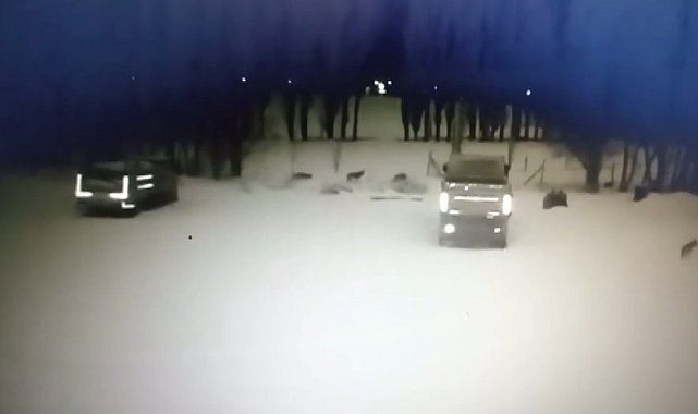 Bayburt'un Arpalı Beldesinde 7 kurt saldırdıkları köpeği telef etti. Bu anlar güvenlik kamerasına yansıdı.