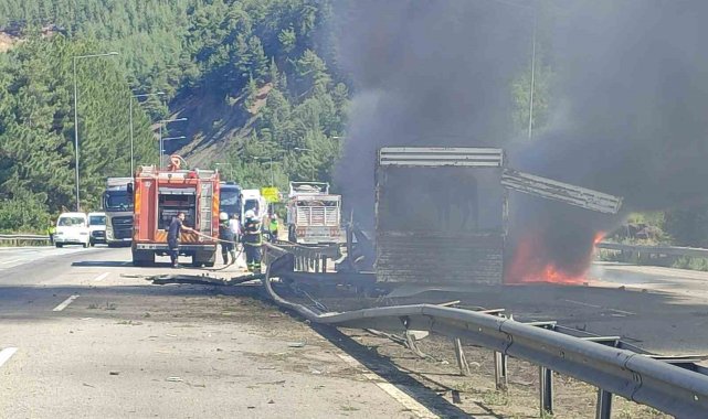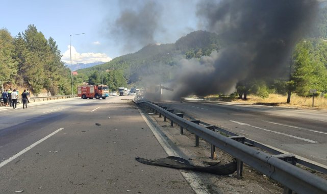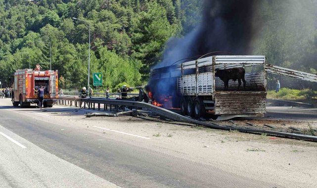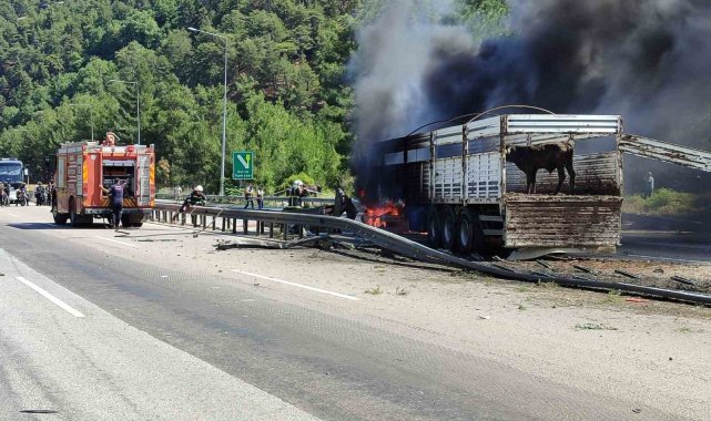 Adana'nın Pozantı ilçesinde otoyolda büyükbaş hayvan yüklü tır alev alev yandı. Sürücü, tırın dorse kapağını açıp hayvanları otoyola indirerek telef olmalarını engelledi.Yangın, Adana-Pozantı otoyolu Akçatekir mevkiinde meydana geldi. Sürücüsünün ismi henüz öğrenilemeyen 63 ADE 887 plakalı büyükbaş hayvan yüklü bir tırda, henüz bilinmeyen bir sebeple yangın çıktı. Sürücü, tırın dorse kapağını açarak büyükbaş hayvanları otoyola indirip, telef olmalarını engelledi.Yangın sebebiyle Pozantı-Adana Ankara otoyolu Ankara istikametine ulaşım kapandı. İtfaiye ekiplerinin yangını söndürmesiyle birlikte otoyolun yeniden trafiğe açılacağı öğrenildi.