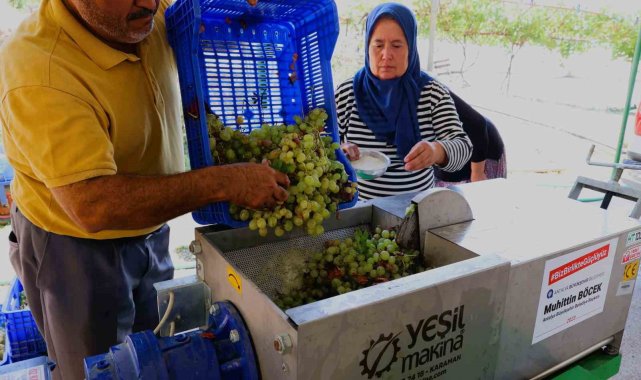 Antalya Büyükşehir Belediyesi, üzüm hasadının başlamasıyla birlikte talepte bulunan mahallelere üzüm sıkma makinelerini göndermeye başladı. Kumluca Karacaören Mahallesi'ne gönderilen üzüm sıkma makinesi ile pekmez yapımına başlayan vatandaşlar zaman kaybı yaşamadan kaliteli ürünü en az kayıpla elde ediyor.Antalya Büyükşehir Belediyesi Tarımsal Hizmetler Dairesi Başkanlığı, yerelden kalkınma hedefleri doğrultusunda üreticilere ekipman desteği sağlamaya devam ediyor. Antalya'da üzüm hasadına başlanmasıyla birlikte üretiminin yoğun olduğu ilçelere gönderilen üzüm sıkma makineleri ile üreticilere destek veriliyor. Talepler doğrultusunda mahalle muhtarlarına teslim edilen makineleri vatandaşlar ücretsiz kullanarak zamandan da tasarruf ediyor. Saatte 1 ton üzüm sıkma kapasitesine sahip makineler ile pekmez yapımındaki zorlu üzüm sıkma işlemi kolaylaşıyor.En az zayiatla kaliteli ürün elde ediliyorKumluca Karacaören Mahallesi'ne gönderilen üzüm sıkma makinesi ile pekmez yapımına başlayan vatandaşlar, zaman kaybı yaşamadan kaliteli ürünü en az zayiatla elde ediyor. Salkım halinde makineye atılan üzümler kısa sürede çekirdek ve posasından arındırılarak şıra halinde kaynamaya hazır hale geliyor."Her zaman yerel üreticimizin yanındayız"Üzüm sıkma makinesi destekleri ile ilgili bilgi veren Antalya Büyükşehir Belediyesi'nde görevli tekniker Muharrem Akman "Vatandaşlarımızın muhtarlıklara ve Büyükşehir ilçe hizmet birimlerimize yaptığı talepler doğrultusunda üzüm sıkma makinelerimizi teslim ediyoruz. Üzüm sıkma makinelerimiz üreticilerimizin, kadınlarımızın hem vakit açısından hem de iş gücü anlamında yükünü azaltıyor. Büyükşehir Belediyesi olarak üreticilerimizin yanında olmaya devam edeceğiz" dedi.