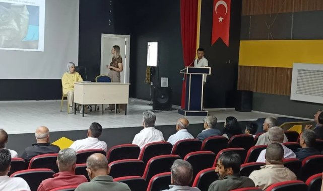 Ağrı'nın Doğubayazıt ilçesinde çiftçilere ve muhtarlara yönelik bilgilendirme toplantısı düzenlendiİlçe Milli Eğitim binası konferans salonunda gerçekleştirilen programda İlçe Tarım ve Orman Müdürü Seher Çakmak Sadık ile veteriner hekimler Bahar Engül ve Zeynep Dağ, şap hastalığı, aşılama çalışmaları ve buzağı ile kuzu-oğlak destek başvuruları hakkında katılımcılara bilgi verdi.Toplantıda ayrıca TÜİK'in tarım sayımıyla ilgili konularda Ziraat Mühendisi Ayşe Altaş sunum yaparak çiftçilere gerekli bilgilendirmeleri aktardı.Programa yoğun ilgi gösteren muhtarlar ve çiftçiler, yapılan bilgilendirmelerin kendileri için faydalı olduğunu belirtti. İlçe Tarım ve Orman Müdürlüğü yetkilileri, üreticilerin bilinçlendirilmesi için bu tür toplantıların devam edeceğini ifade etti.