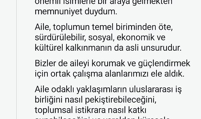 Cumhurbaşkanı Recep Tayyip Erdoğan'ın eşi, Birleşmiş Milletler (BM) Sıfır Atık Yüksek Düzeyli Şahsiyetler Danışma Kurulu Başkanı Emine Erdoğan, BM 80. Genel Kurulu marjında, Aile ve Sosyal Hizmetler Bakanlığının ev sahipliğinde BM Genel Merkezi'nde düzenlenen "Birlikte Daha İyiye: Aileden Başlayan Küresel Dayanışma" temalı yan etkinliğe ilişkin paylaşımda bulundu.Emine Erdoğan, NSosyal'deki hesabından yaptığı paylaşımda, etkinlik vesilesiyle uluslararası önemli isimlerle bir araya gelmekten duyduğu memnuniyeti ifade etti.Ailenin, toplumun temel biriminden öte sürdürülebilir, sosyal, ekonomik ve kültürel kalkınmanın da asli unsuru olduğunu belirten Emine Erdoğan, mesajında şunları kaydetti:"Bizler de aileyi korumak ve güçlendirmek için ortak çalışma alanlarımızı ele aldık. Aile odaklı yaklaşımların uluslararası işbirliğini nasıl pekiştirebileceğini, toplumsal istikrara nasıl katkı sunabileceğini ve yerelden küresele dönüştürücü bir güç olarak nasıl rol oynayabileceğini değerlendirdik. Zira biliyoruz ki aile, değerlerin taşıyıcısı, çocuklarımız için en güvenli sığınak ve insanlığın yarınıdır. Krizlerin, çatışmaların ve afetlerin gölgesinde bize yol gösteren hakikat, dayanışmanın aileden başladığıdır. Türkiye olarak, barışa, adalete ve ortak refaha giden yolun aileden geçtiğine inanıyoruz. Öyle ki aileyi koruyabildiğimiz ölçüde, daha adil, daha huzurlu ve daha müreffeh bir dünya inşa edebiliriz. Bu doğrultuda belirtilen her görüş ve önerinin, aile kurumunu koruma yolunda, küresel ölçekte atılacak adımlara ilham olacağına yürekten inanıyorum."