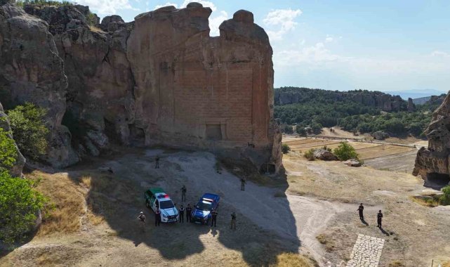 Eskişehir İl Jandarma Komutanlığı tarafından Yazılıkaya Frig İnanç Merkezi'nde komando ve asayiş timlerince yapılan çalışmalarda; sit alanları, tarihi yapılar, ören yerleri ve doğal koruma alanlarında denetimler artırılırken, izinsiz kazı faaliyetlerine karşı devriye faaliyetleri sıklaştırıldı.Kültür ve Tabiat Varlıklarını Koruma Kanunu kapsamında İl Jandarma Komutanlığı ekiplerince yapılan çalışmalar Eskişehir'de titizlikle sürdürülüyor. Bu kapsamda, Eskişehir İl Jandarma Komutanlığınca; sit alanları, tarihi yapılar, ören yerleri ve doğal koruma alanlarında denetimler artırılırken, izinsiz kazı faaliyetlerine karşı riskli bölgelerde devriye faaliyetleri sıklaştırıldı. Kaçakçılıkla Mücadele kapsamında, müzeler ve ilgili kurumlarla iş birliği içinde eğitim ve bilgilendirme faaliyetleri yürütülüyor. Eskişehir İl Jandarma Komutanlığı ekiplerince vatandaşların bilinçlendirilmesine yönelik broşür dağıtımı, bilgilendirme toplantıları ve medya paylaşımları gerçekleştiriliyor.Yapılan çalışmalar kapsamında İl Jandarma Komutanlığına bağlı komando ve asayiş ekiplerince Han İlçesi Yazılıkaya köyünde bulunan Yazılıkaya Frig İnanç Merkezi'nde faaliyet yapıldı. Yaya devriyeler şeklinde yapılan çalışmalarda, izinsiz kazı yapan kişi ve kişiler hakkında işlem yapılıyor.Öte yandan, bölgeye ziyaret eden turistler ise jandarma ekiplerince hatıra fotoğrafı çekinip, çalışmalarında timlere teşekkür ediyor. Ekiplerin titiz çalışmaları dron ile görüntülendi.