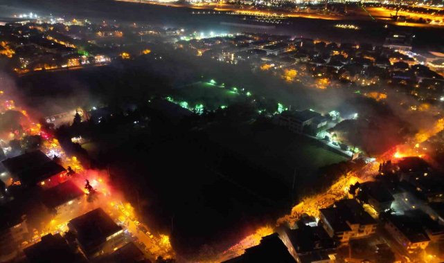 Süper Lig'de 2024-2025 sezonunun şampiyonu Galatasaray'ın Florya'daki şampiyonluk kutlamaları havadan görüntülendi.Süper Lig'de 2024-2025 sezonunun şampiyonu Galatasaray'ın Florya'daki şampiyonluk kutlamaları havadan görüntülendi.Dronla çekilen görüntülerde, binlerce taraftarın Florya Metin Oktay Tesisleri çevresini doldurduğu ve adeta sarı-kırmızıya boyadığı görüldü. Taraftarların yaktığı meşaleler geceyi gündüze çevirirken, sokaklar marşlarla inledi. Ellerinde Galatasaray bayraklarıyla sevinç gösterisinde bulunan taraftarlar, 24. şampiyonluğu doyasıya yaşadı.