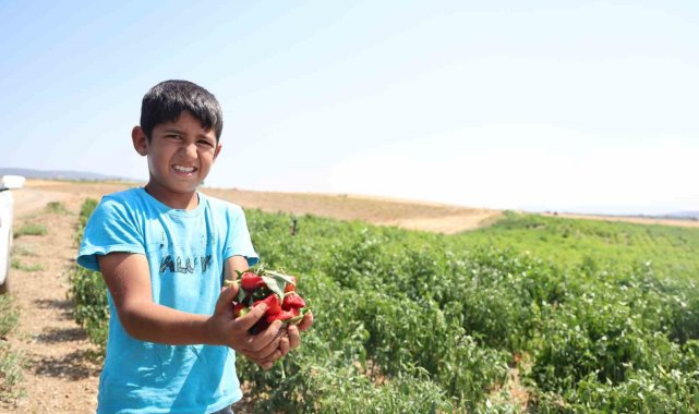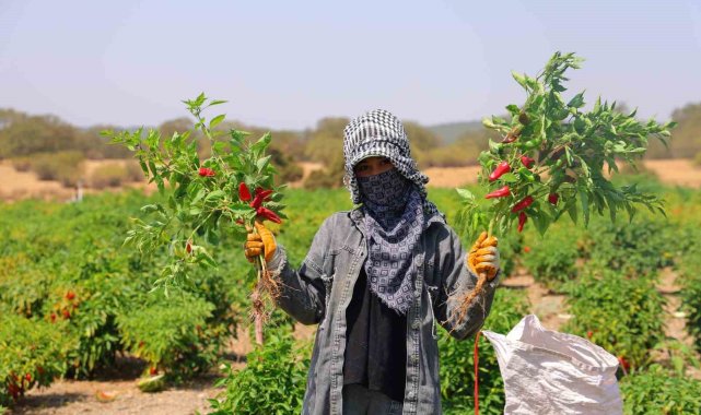 Kahramanmaraş'ta Türk Patent ve Marka Kurumu tarafından coğrafi işaret tescili almış Maraş biberinde hasat dönemi başladı. Kentin verimli topraklarında yetişen biberler, üreticiler tarafından toplanarak kurutulmak üzere sergilere gönderiliyor.Kendine özgü aroması, acılığı ve rengiyle bilinen Maraş biberi, hem yemeklere kattığı lezzet hem de sağlığa faydalarıyla öne çıkıyor. Türkiye'nin yanı sıra yurt dışından da talep gören biber, Kahramanmaraş ekonomisine önemli katkı sağlıyor. Yüzyıllardır bölgede geleneksel yöntemlerle işlenen Maraş biberi, kurutma ve öğütme işlemlerinin ardından pul biber olarak sofralara ulaşıyor. Sabah erken saatlerde tarlalara giren çiftçiler, özenle topladıkları biberleri güneşe sererek kurutmaya bırakıyor. Kentin dört bir yanında kırmızıya bürünen tarlalar ve sergiler, Maraş biberi sezonunun başladığını gözler önüne seriyor.Türkiye'nin dört bir yanına gönderilen Maraş biberi, kurutma ve öğütme işlemlerinin ardından pul biber olarak sofralarda yerini alıyor. Üreticiler, rekoltenin yüksek olmasını beklerken, fiyatların da emeği karşılayacak seviyede olmasını istedi.Hasat yapanlardan Elif Cengiz, "Tarlada biber topluyoruz. Yaptığımız iş çok zor Maraş biberi de kaliteli güzel" dedi.Çalışanlardan Mehmet Cengiz de, "Maraş biberi çok güzel havalar sıcak ve zor şartlarda çalışmaya devam edip üretime katkı sağlıyoruz" diye konuştu.Hem okula giden hem de çalışan Suca Cengiz de "Yaz mevsiminde çalışıp kış mevsiminde okumaya çalışıyorum. Hukuk okumak istiyorum" ifadesini kullandı.