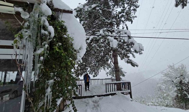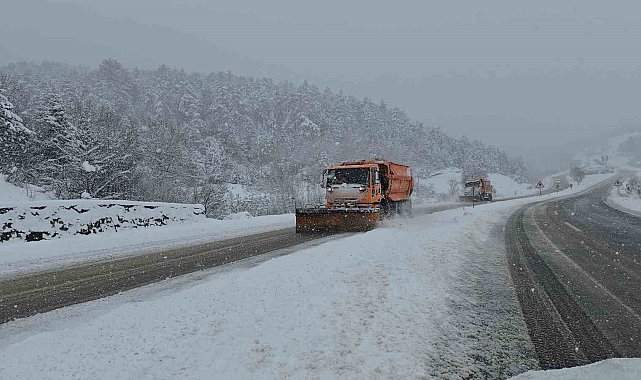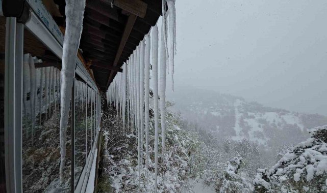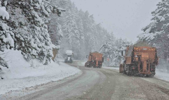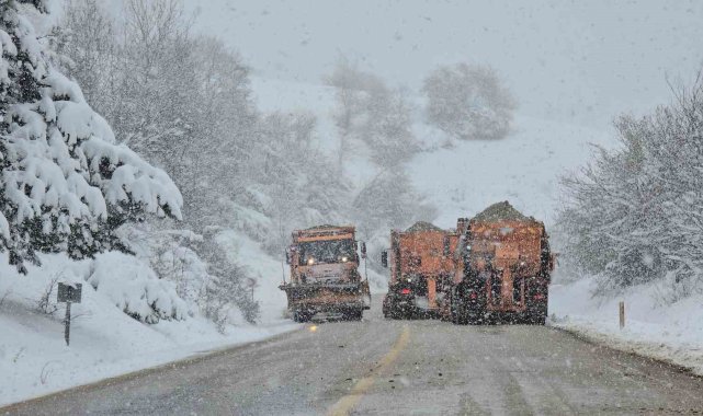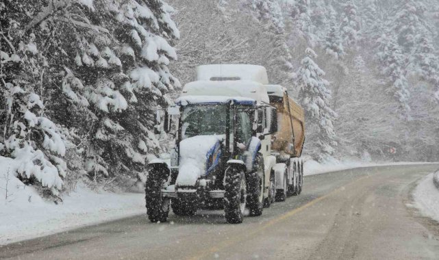 Karabük'te kuvvetli kar yağışı uyarısının ardından kent genelinde hayatı olumsuz yönde etkiledi. Karabük-Bartın Karayolunda etkili olan ve aralıksız devam eden kar yağışı sonrası ağır tonajlı araçların geçişlerine izin verilmezken, yol güzergahı üzerinde 4 kar küreme ve tuzlama aracı ile bir greyder aralıksız kar küreme çalışması yapıyor.Meteoroloji Genel Müdürlüğü'nün sarı kod ile kuvvetli kar uyarısında bulunduğu Karabük'te kar yağışı aralıksız devam ediyor. Kış ayında almadığı kar yağışını Nisan ayında gören Karabük'te kar kalınlığı yer yer 30 santimetreyi aştı. Yüksek kesimlerde kar kalınlığının 50 santimetreye ulaştığı Karabük'te 1030 rakımlı Ahmet Usta mevkiinde tonajlı araçların geçişine izin verilmiyor. Karabük - Bartın karayolunda yoğun bir şekilde devam eden kar yağışı sonrası Bölge Trafik ekipleri yol güzergahında önlem alınırken, karayolları ekipleri ise yolun açık kalması için kar küreme ve tuzlama çalışmalarını sürdürüyor.Öte yandan, yolda kalan ağır tonajlı bir tır ise traktör yardımı ile çekildi. Hava sıcaklığının sıfırın altında seyrettiği bölgede ise buz sarkıtları oluşması ise dikkat çekti.