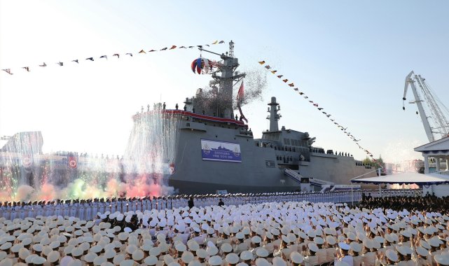 Kuzey Kore, ordunun 93'üncü kuruluş yıl dönümünü yeni üretilen ve son teknoloji silah sistemleriyle donatılan 5 bin tonluk savaş gemisini denize indirerek kutladı.Nükleer silah ve balistik füze programıyla Kore Yarımadası ve çevresinde güvenlik endişelerine neden olan Kuzey Kore'den yeni bir savunma hamlesi daha geldi. Kuzey Kore yönetiminden yapılan açıklamaya göre son teknoloji silah sistemleriyle donatılan 5 bin tonluk yeni çok amaçlı savaş gemisi, Kore Halk Ordusu'nun 93'üncü kuruluş yıl dönümü kutlamaları çerçevesinde Nampho Tersanesi'nde yapılan törenle denize indirildi. Törene Kuzey Kore lideri Kim Jong-un'un yanı sıra Kim'in kızı Ju-ae ile üst düzey komutanlar ve devlet yetkilileri katıldı.Kim: "Tarihi önem taşıyor"Adını Japon ordusuna karşı savaşan komutan "Choe Hyon"dan alan yeni savaş gemisine binen Kim, yetkililerden bilgi alarak incelemelerde bulundu. Yeni üretilen geminin deniz egemenliğinin savunulmasına büyük katkı sağlayacağını vurgulayan Kim, "Yeni Choe Hyon sınıfı destroyerlerin ilki olan bu geminin Kore Halk Ordusu'nun kuruluş yıl dönümünde denize indirilmesi tarihi önem taşımaktadır" şeklinde konuştu. Kuzey Kore ordusunun denizlerdeki gücünü artırma politikasını kararlılıkla sürdüreceklerinin altını çizen Kim, "Kore Yarımadası'ndaki nükleer tehditler de dahil olmak üzere askeri tehditleri güvenli bir şekilde yönetmenin ve denizaşırı güçlerin yarımadadaki askeri varlıklarını genişletme girişimlerini engellemenin en güvenilir yolu açık denizlerde operasyonel kabiliyetlere sahip olmaktır" ifadelerini kullandı."Tehditlere kararlılıkla yanıt vereceğiz"ABD ve Güney Kore'nin bölgede gerçekleştirdiği ortak tatbikatlara da tepki gösteren Kim, "ABD ve Güney Kore'nin yeni nükleer savaş planı, ülkemize yönelik düşmanca niyetin en açık ifadesidir, bölgesel ve küresel barışa doğrudan bir tehdit oluşturmaktadır" dedi. Güvenlik tehditlerine karşı gerekli tedbirleri alacaklarını yineleyen Kim, "Jeopolitik gelişmelere ve ortaya çıkan tehditlere kararlılıkla yanıt vereceğiz ve gereken tüm karşı önlemleri alacağız" diye konuştu. Kim ayrıca, yetkililere "Choe Hyon" sınıfı destroyerler, çeşitli tiplerde askeri gemiler ve nükleer enerjili denizaltıların üretimini sürdürme talimatı verdi.Törenle denize indirilen geminin gelecek yılın başlarında Kuzey Kore donanmasına teslim edileceği açıklandı. Tersanede gerçekleştirilen törenin ardından resmi bir kutlama yemeği düzenlendi.