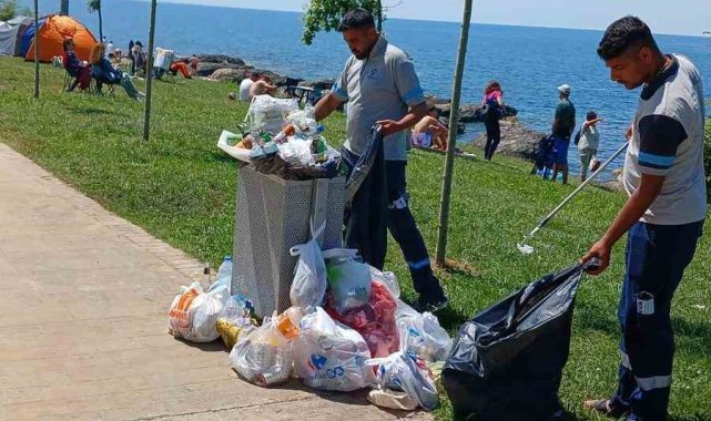 Kocaeli'de belediye ekipleri, bayram tatili süresince Mavi Bayraklı sahillerde temizlik çalışmalarını aralıksız sürdürdü.Kocaeli Büyükşehir Belediyesi ekipleri, Kandıra sahillerinde de bayram boyunca görev alarak tatilcilerin temiz, huzurlu ve güvenli ortamda tatillerini yapmalarına yardımcı oldu. Park ve Bahçeler Dairesi Başkanlığı'na bağlı ekipler, sabahın erken saatlerinden gece yarılarına kadar sahil şeridinde çöpleri toplayarak, yoğun mesai harcadı.Mavi Bayraklı plajlar, kumsallar ve yürüyüş yollarında biriken çöpler, Büyükşehir ekipleri tarafından toplanarak poşetlendi. Sahil boyunca çevre düzenlemesi ve temizliği titizlikle gerçekleştirildi.