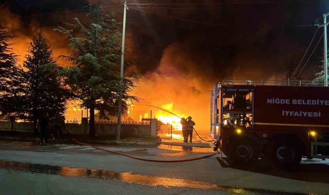 Niğde Organize Sanayi Bölgesi'nde bir fabrikada yangın çıktı. Ekiplerin yangına müdahalesi sürüyor.Edinilen bilgiye göre, Niğde Organize Sanayi Bölgesi'nde faaliyet gösteren Saygın Plastik Ambalaj isimli fabrikada bilinmeyen bir sebepten dolayı yangın çıktı. Fabrikada alevler yükselirken, haber verilmesi üzerine olay yerine çok sayıda itfaiye ve polis ekipleri sevk edildi.Fabrikada bulunan işçiler tahliye edilirken, ekiplerin yangına müdahalesi sürüyor.