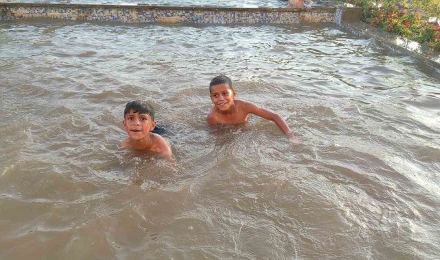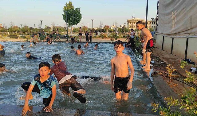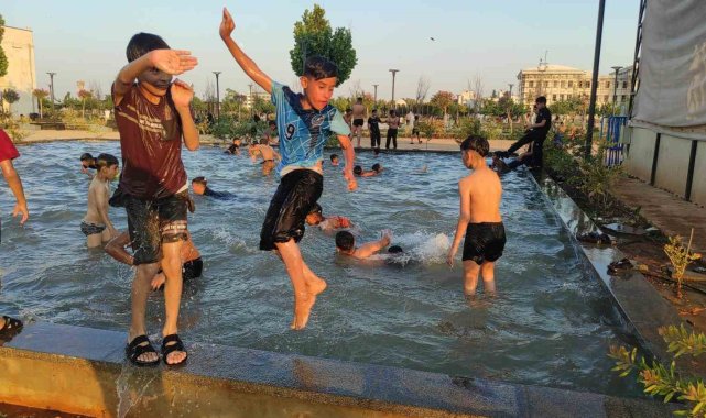 Şanlıurfa'da sıcak havada bunalan çocuklar süs havuzlarında serinledi.Termometrelerin 40 dereceyi aştığı Şanlıurfa'da, piknik yapan ailelerin çocukları, sıcaktan bunalınca çareyi süs havuzunda buldu. Havuz çevresinde oluşan kalabalık, adeta sahil havası estirdi. Bazı çocuklar ayakkabılarını çıkarıp suya girerken, bazıları da elbiseleriyle birlikte suyun keyfini çıkardı. Renkli görüntülerin ortaya çıktığı anlarda çocuklar hem serinledi hem de doyasıya eğlendi. Aileler ise gölgelik alanlarda çocuklarını izleyerek vakit geçirdi.