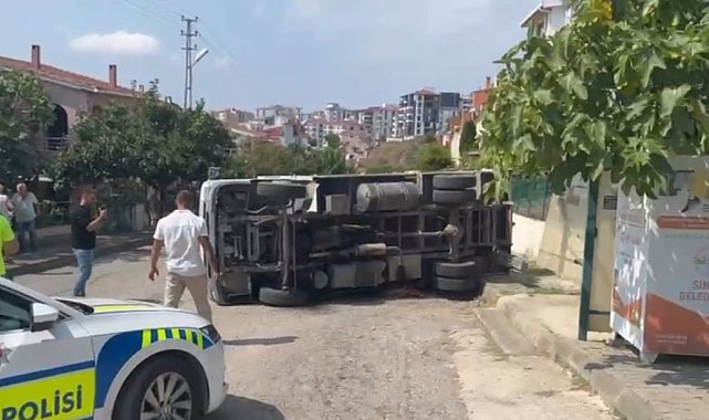 Sinop'ta freni boşalan belediye kamyoneti devrildi, kazada 1 kişi yaralandı.Kaza, saat 11.30 sıralarında Ada Mahallesi Özlem Konutları mevkiinde meydana geldi. Edinilen bilgilere göre, Sinop Belediyesine ait 57 SNP 001 plakalı kamyonet, yükünü boşaltırken yokuşta frenleri boşaldı. Sürücü E.T., direksiyonu son anda kırarak aracın tamamen kontrolden çıkmasını önlemeye çalıştı ancak kamyonet durağa çarparak devrildi.Kazada araçta yolcu olarak bulunan belediye çalışanı E.B. yaralandı. Olay yerine sevk edilen polis ve sağlık ekipleri, yaralıya ilk müdahaleyi yaptıktan sonra E.B.'yi ambulansla hastaneye kaldırdı. Yapılan kontrollerde sağlık durumunun iyi olduğu öğrenildi.Devrilen kamyonet, çekici yardımıyla bulunduğu yerden kaldırıldı ve yolda güvenlik önlemleri alındı.