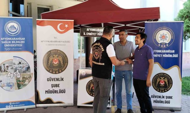 Afyonkarahisar'da polis tarafından üniversite öğrencileri ve velilerine yönelik 'terörle mücadele' konusunda bilgilendirme faaliyeti gerçekleştirildi.Etkinlik Afyon Kocatepe Üniversitesi ve Afyonkarahisar Sağlık Bilimleri Üniversitesinde yapıldı. Etkinlikle ilgili kurumdan yapılan yazılı açıklamada, "İl Emniyet Müdürlüğü görevlilerimizce üniversitelerimizde eğitim-öğretimin huzur ve güven ortamında sürdürülebilmesi, öğrencilerimizin terör faaliyetlerinden uzak tutulması, meydana gelebilecek olayların önlenebilmesi amacıyla üniversiteye yeni kayıt yaptıran öğrencilerin ve velilerinin bilinçlendirilmesi adına Afyon Kocatepe Üniversitesi ve Afyonkarahisar Sağlık Bilimleri Üniversitesinde 2025-2026 eğitim öğretim yılı kayıt dönemi olan 1-5 Eylül 2025 tarihleri arasında stant açılarak Öğrenci ve Velilerine gerekli bilgilendirme çalışmaları yapılmıştır" ifadelerine yer verildi.