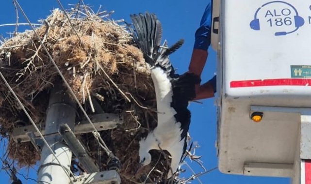 Afyonkarahisar'da elektrik direğinde leylek yaptığı yuvaya takılı kalınca devreye giren Osmangazi Elektrik Dağıtım A.Ş. (OEDAŞ) ekipleri tarafından kurtarıldı.Sandıklı ilçesinin Dodurga mahallesinde bulunan elektrik direğine bir leylek yuvasını yaptı. Balya ve iplere ayağı takılan leylek uçamayıp yuvaya takılı kaldı. Mahalle muhtarının ihbarı üzerine olay yerine gelen OEDAŞ ve Sandıklı Doğa Koruma ve Milli Parklar ekipleri tarafından kurtarma çalışmaları başlatıldı. Ekipler tarafından alınan güvenlik önlemleri alındı. Yapılan çalışmalar neticesinde ise yuvada asılı kalan leylek ekiplerce kurtarıldı. Ardından Sandıklı Doğa Koruma ve Milli Parklar ekipleri tarafından leyleğin yaralı olduğu belirlendi. Hayvan, kontrol ve tedavi amaçlı Afyonkarahisar Kocatepe Üniversitesi Rehabilitasyon Merkezi'ne götürüldü. Tedavi sonrasında ile leyleğin yuva yakınlarında doğa salınacağı aktarıldı.