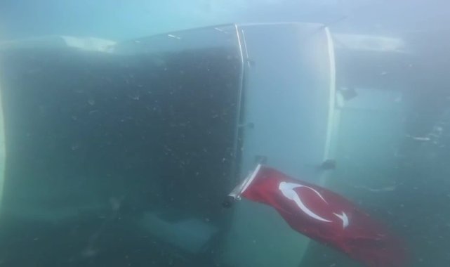 Zonguldak'ın Ereğli ilçesinde denize indirildikten dakikalar sonra batan yaklaşık 40 milyon lira değerindeki yatın deniz dibindeki görüntüleri ortaya çıktı. Yatın denizden çıkartılması için çalışmalar sürüyor.Karadeniz Ereğli ilçesinde bir tersanede yapımı tamamlandıktan sonra suya indirilen lüks yat, belirli bir süre suda kaldıktan sonra önce devrildi ardından da battı. Değeri 40 milyon lirayı bulan lüks yatın deniz dibinde kaydedilen görüntüleri ortaya çıktı.Yattaki mahsur kalanların Sahil Güvenlik ekiplerince kurtarıldığı olayda facia ucuz atlatıldı. Su altı görüntülerinde, lüks yatın denizin dibinde yan yatmış halde bulunduğu görüldü. Ekiplerin, batığın bulunduğu bölgeden çıkarılması için çalışmalarını sürdürdüğü bildirildi.